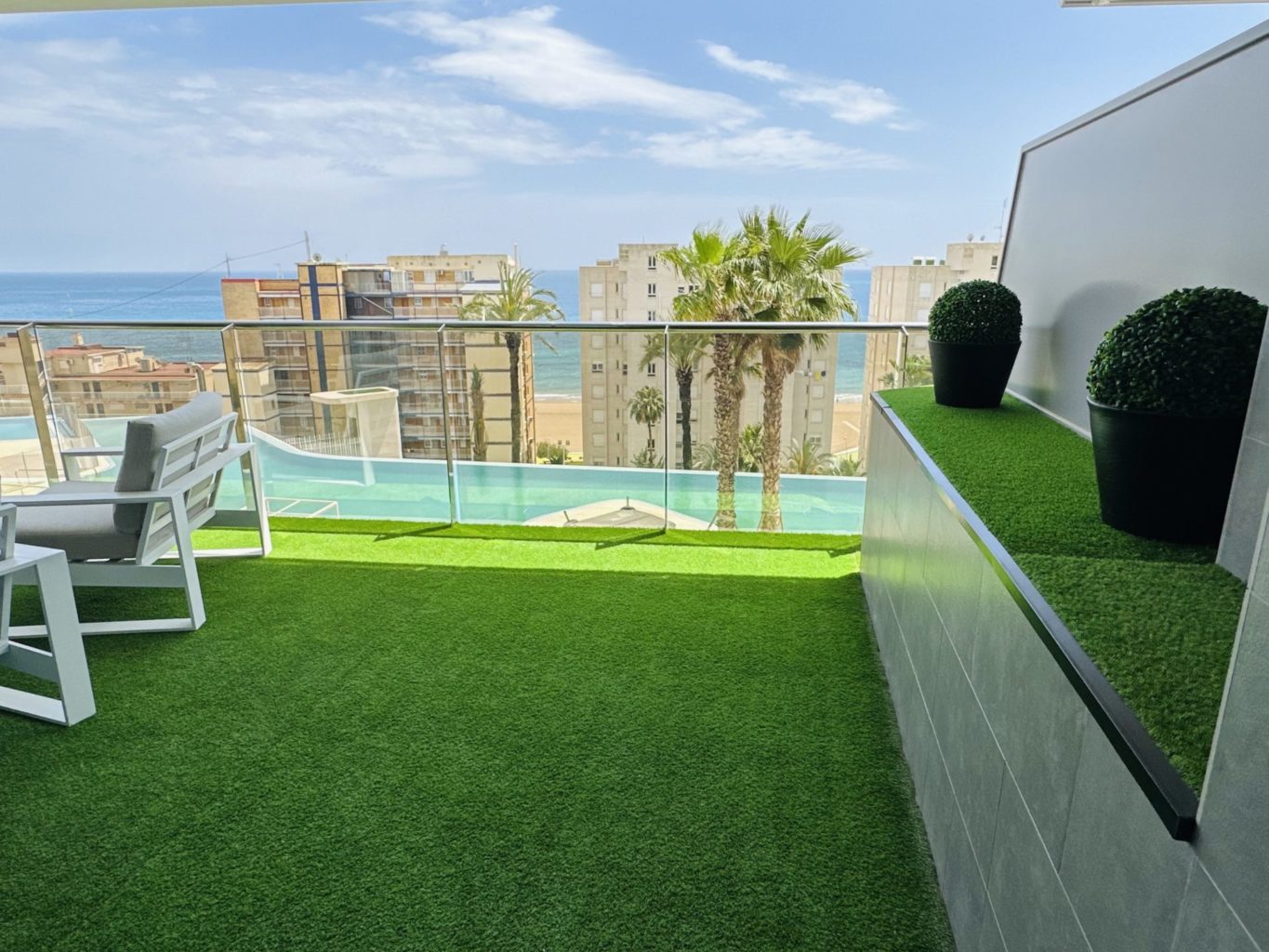Sunset Cliffs is a 5 Star Complex it is Benidorms new modern Towers, one of Costa Blancas most luxurious and unik complex. The modern complex has 3 pools and 3 jacuzzi’s, heated pool, bar in the pool, sun beds, fitness with sauna, tennis, basketball, football, paddle and picnic area. All the utilitys are located in front of the buildings. From here it is possible to enjoy the sun all day, while you are swimming in the pools or relaxing in 1 of the 3 Jacuzzis, and cooling down with a drink from the bar inside the urbanisation. From the pool you have a amazing view of the Mediteraneo sea.